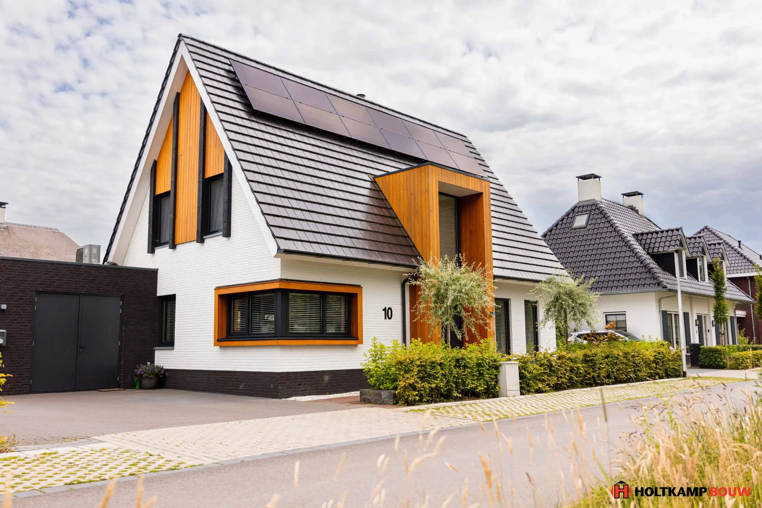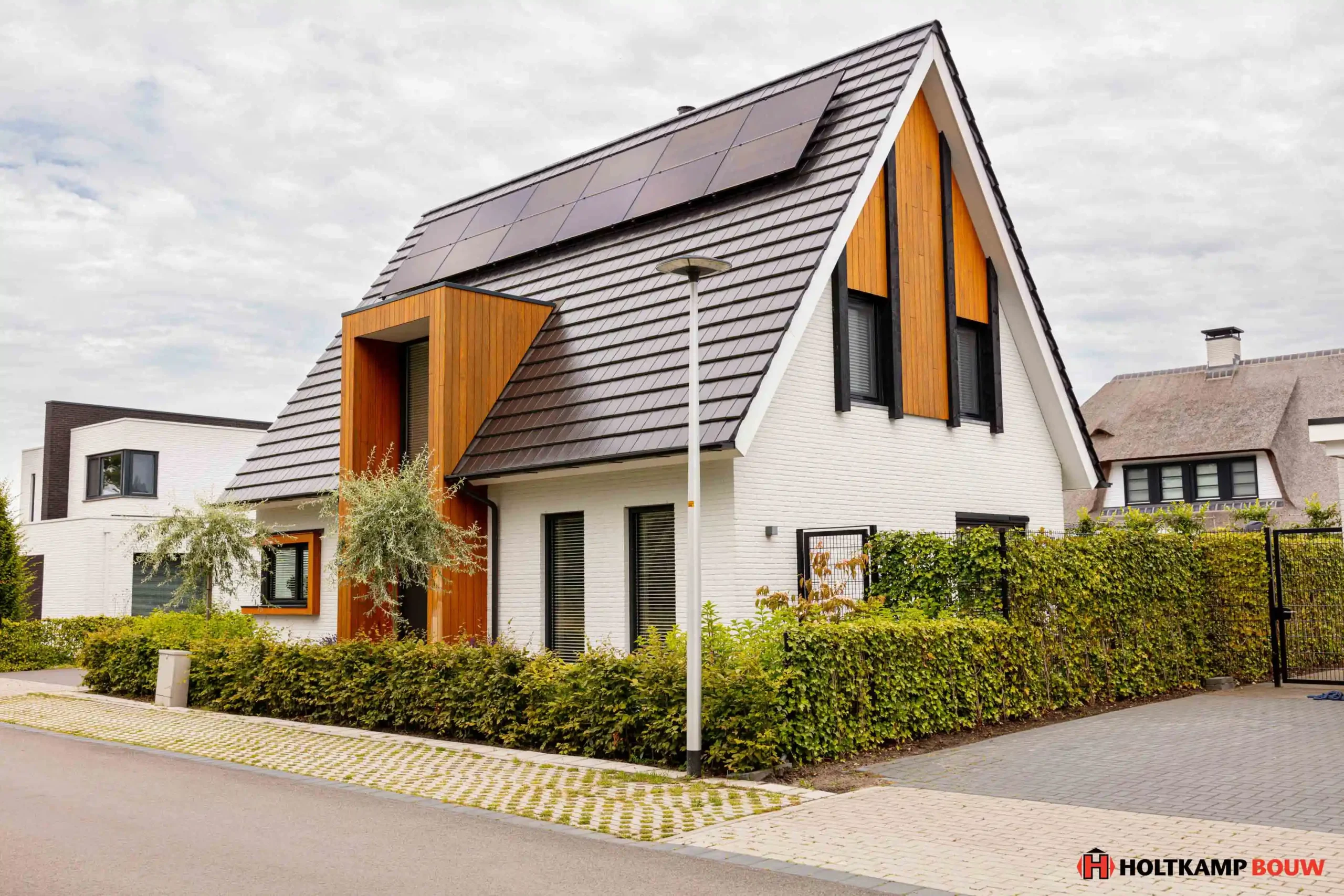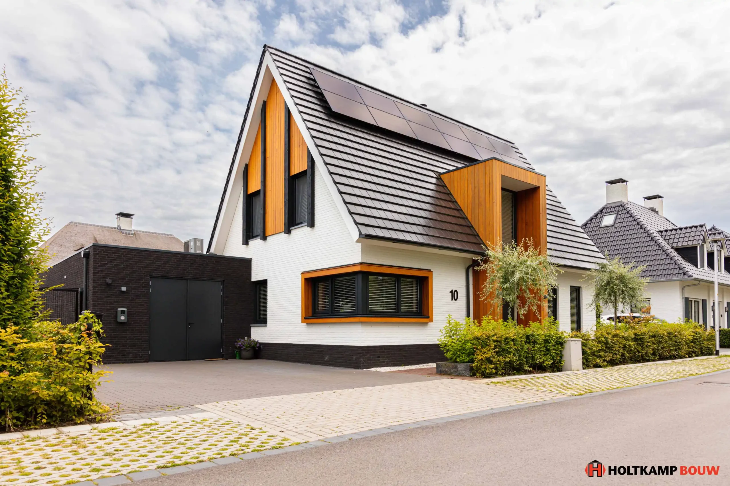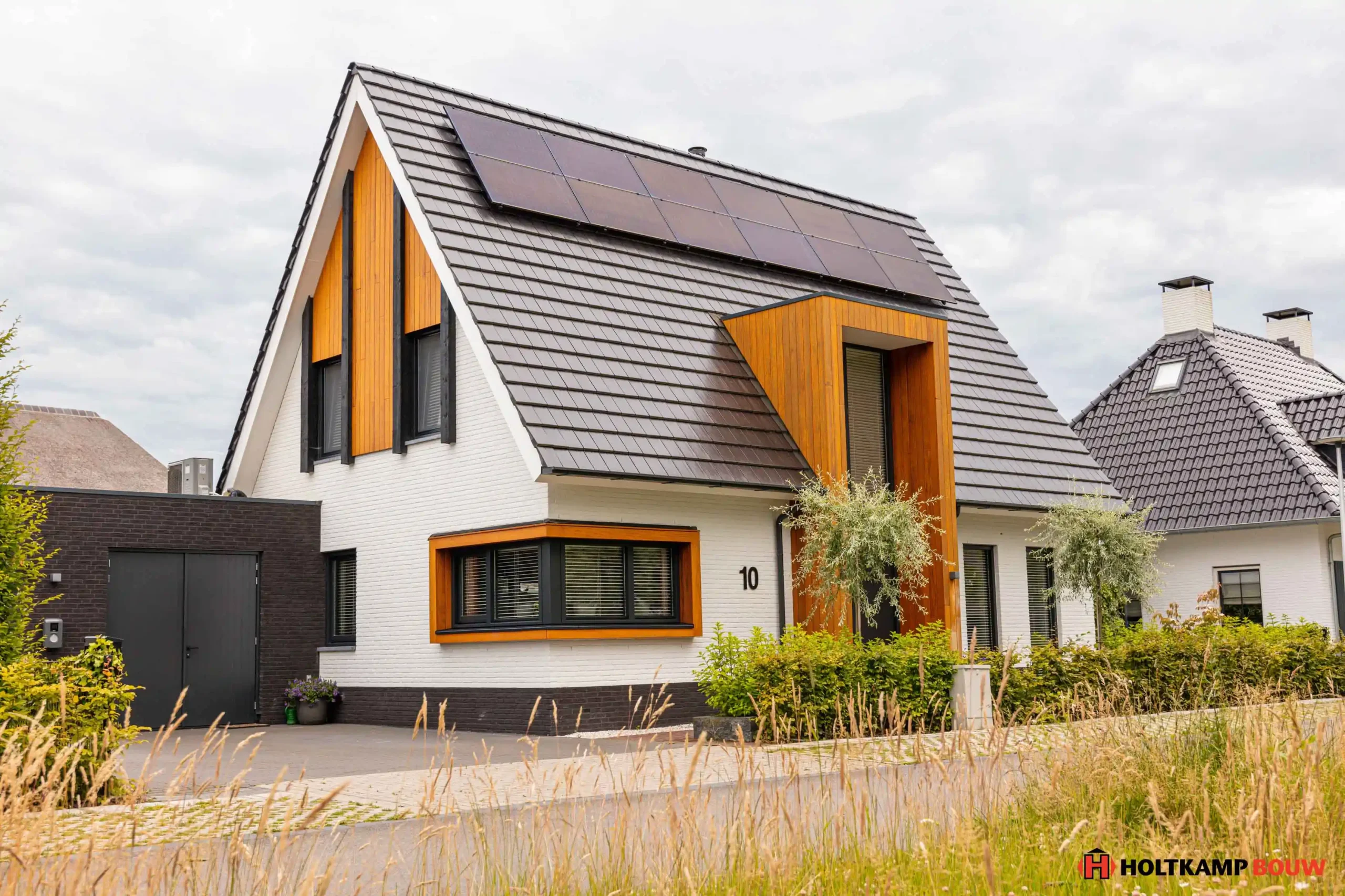 Met een goothoogte van 3500mm behoudt de woning een menselijke schaal, terwijl het toch een imposante uitstraling heeft. Zoals bij alle projecten van Holtkamp Bouw, is deze woning een eigen ontwerp, wat betekent dat elk detail nauwkeurig is afgestemd op de wensen van de klant en de specifieke kenmerken van de locatie.