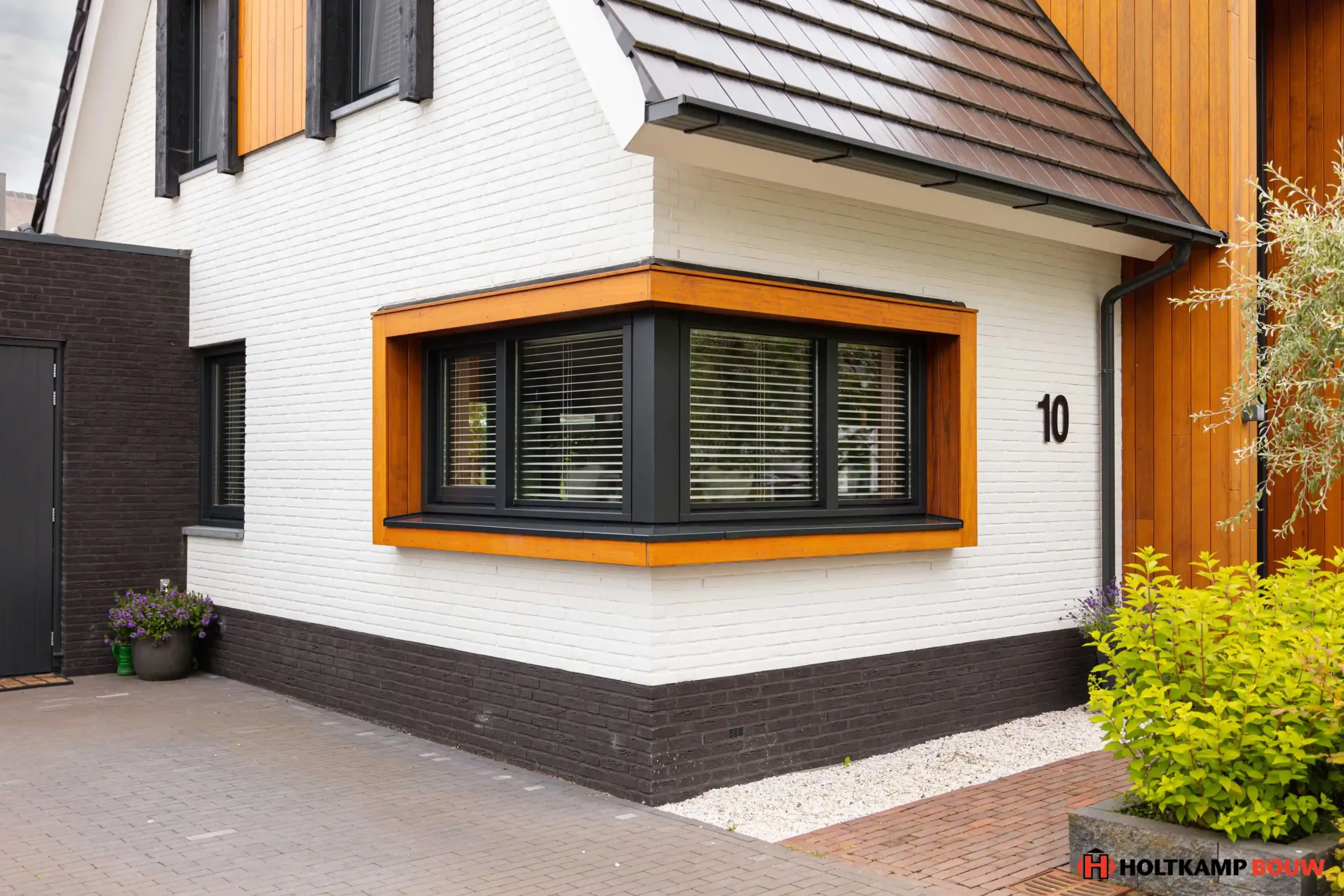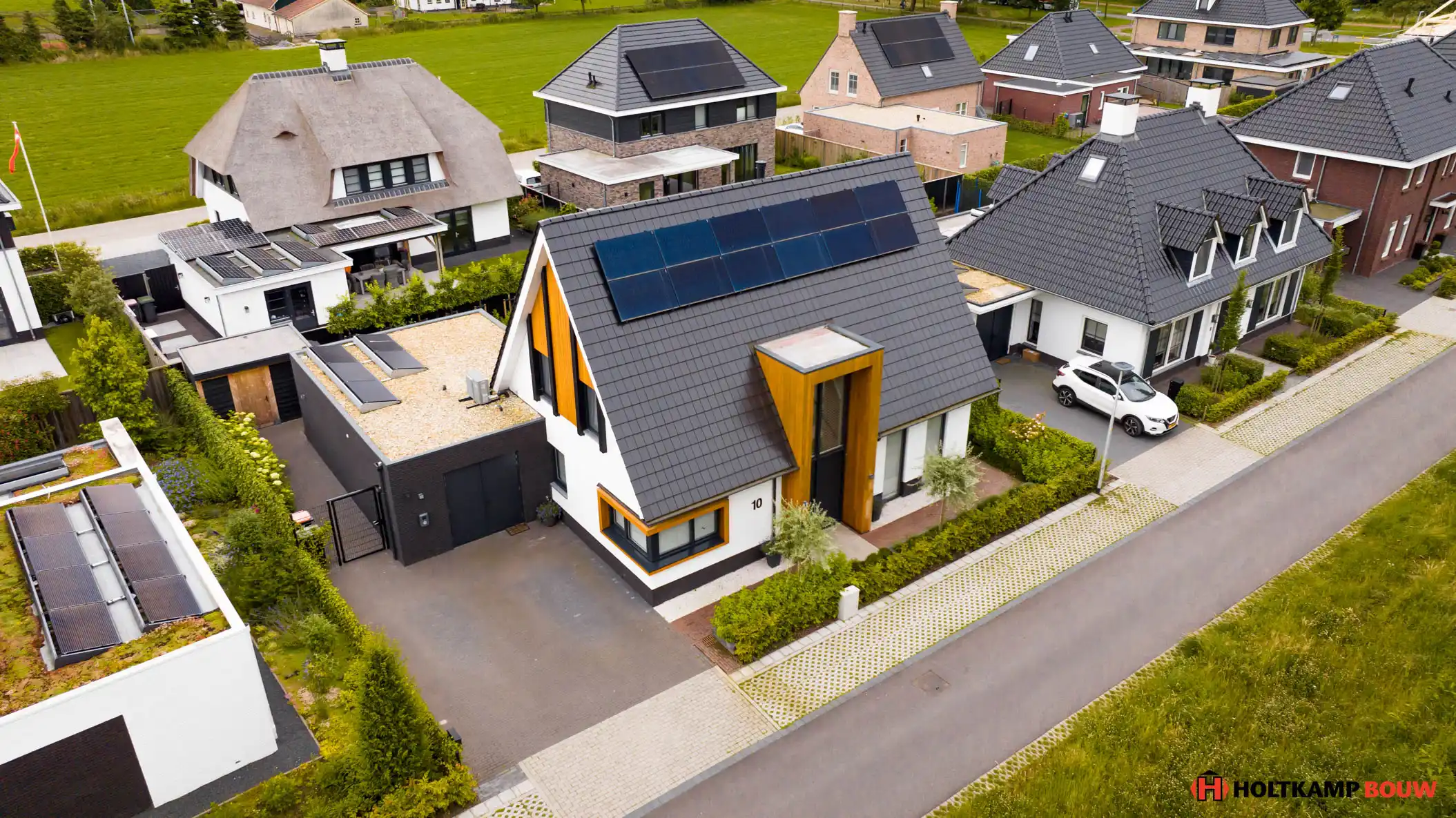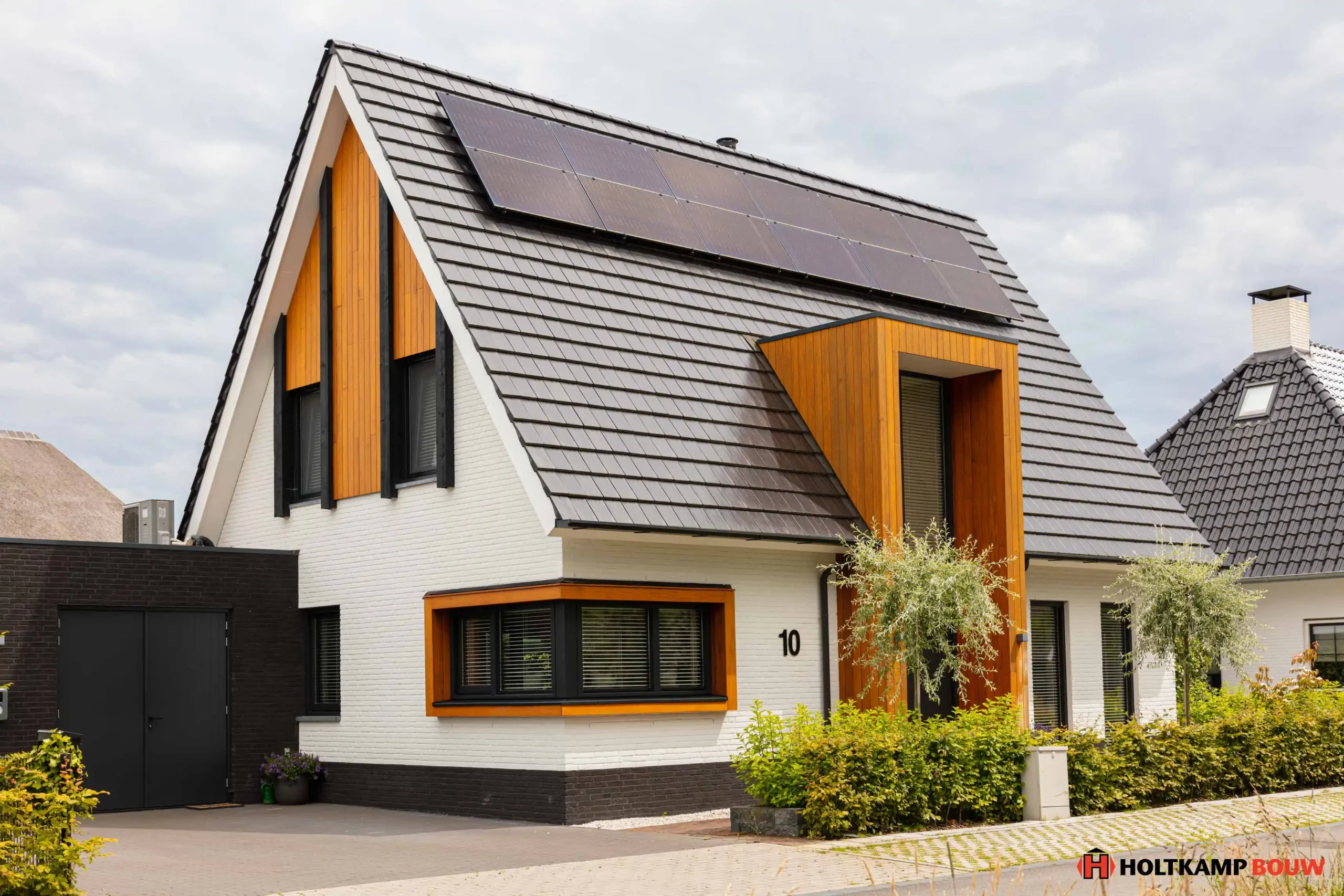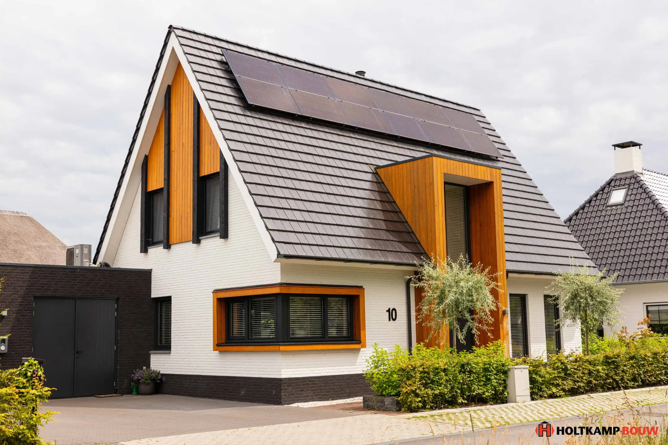 Met een goothoogte van 3500mm behoudt de woning een menselijke schaal, terwijl het toch een imposante uitstraling heeft. Zoals bij alle projecten van Holtkamp Bouw, is deze woning een eigen ontwerp, wat betekent dat elk detail nauwkeurig is afgestemd op de wensen van de klant en de specifieke kenmerken van de locatie.